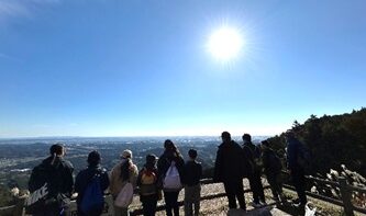 その敷地は、東から南斜面部分を占める標高430mの霧山と北側の霧山国有林からなっています。当センターから東には、観音山を背にした静岡県立観音山少年自然の家と観音山育成牧場跡が見えます。また、南東には滝沢山。南西には三岳山を望むことができます。霧山の頂上付近に登ると、北東に富士山を南西に奥浜名湖、さらに眼下には引佐湖を眺望することができます。