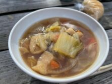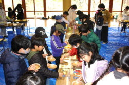 みんなで協力して野菜を切って美味しいお雑煮を作りましょうね😋