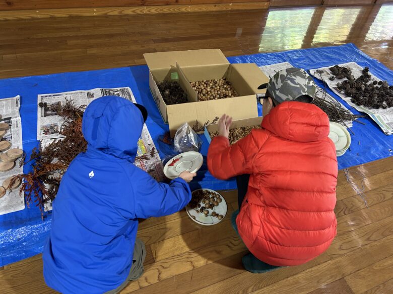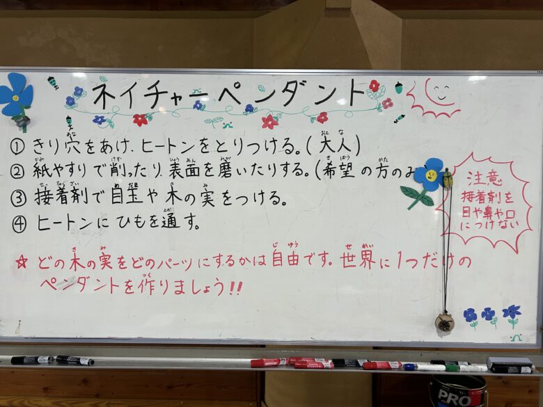 ペンダントで使う材料は、全て本所で採れた木の実や枝です。