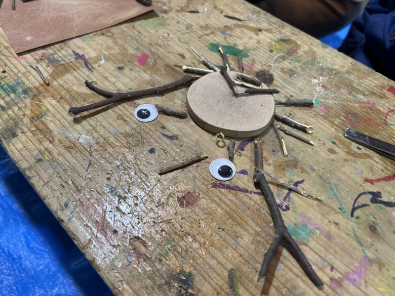 クラフト活動では、ペンダント作りと小枝ストラップ作りに挑戦しました。